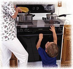 Use an Oven Lock to prevent access to the hot oven and also to keep the child from standing on the oven door which can cause the oven to tip over